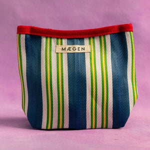 The Striped Pouch Bright, bold, and brilliantly versatile; the NEW MÆGEN Striped Pouch is crafted from recycled nylon, bringing sustainable style to your everyday essentials.