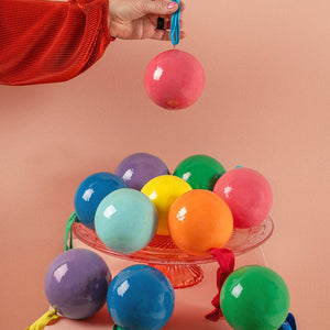 These colourful handmade baubles are made from papier mache using recycled paper.