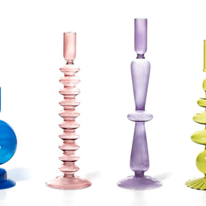 Make a statement with these decorative coloured glassware taper holders from MÆGEN (May-en), they are the perfect pair to with their glossy twisted and spiral taper candles (also available at :In-Residence Lifestyle Store)
