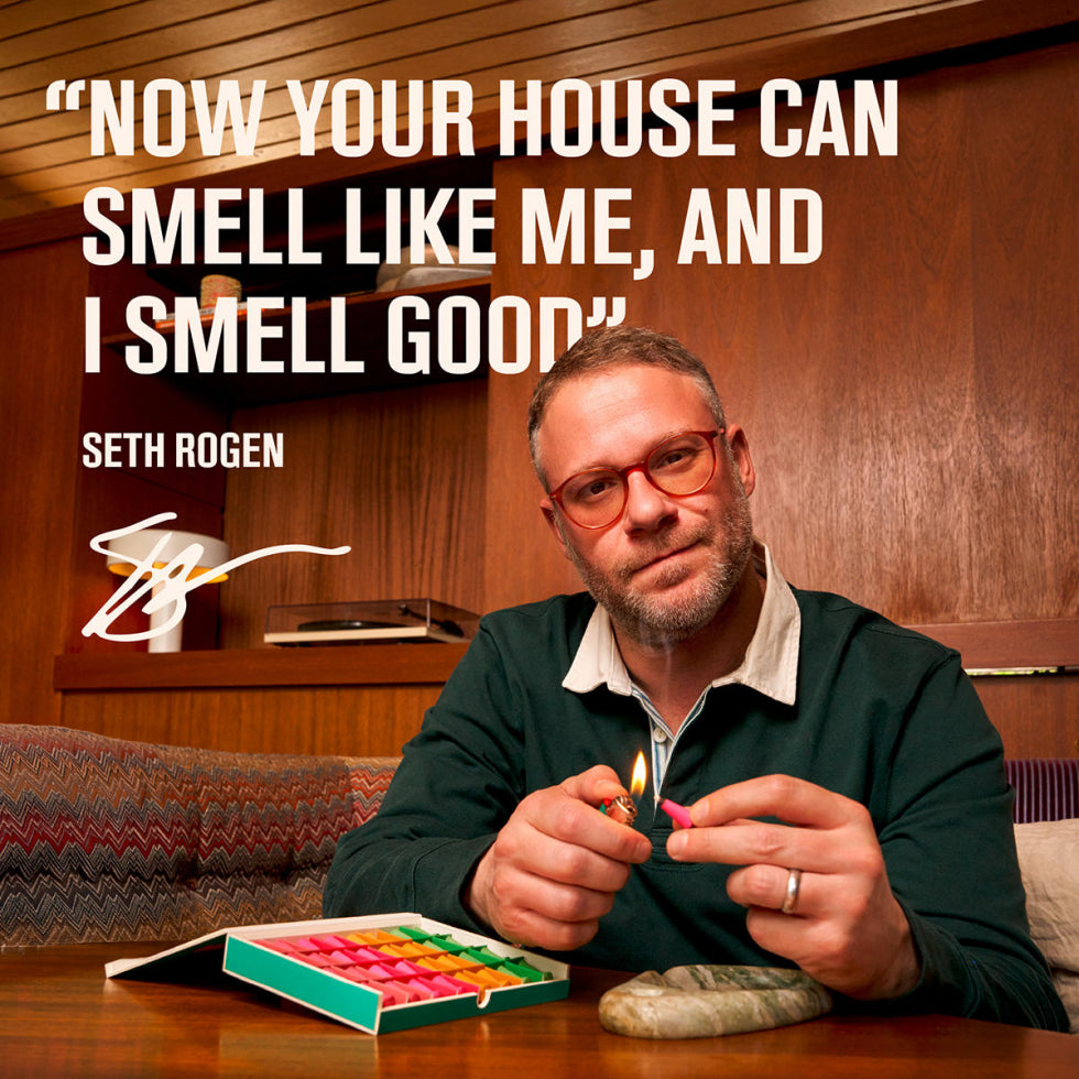 This set includes a custom marbled glass holder and 48x incense droplets (that’s 480 minutes of Seth-approved scent).